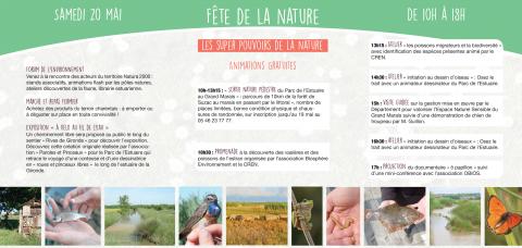 Pour la première fois, une fête de la nature est organisée sur le site. Deux journées d'animations gratuites pour découvrir la richesse des marais estuariens, l'Estuaire de la Gironde et des acteurs qui participent au maintien de ces milieux naturels pour le bonheur de tous. Un marché de producteurs du territoire en circuit court vous permettra de déguster des spécialités charentaises le midi et d'acheter quelques douceurs.