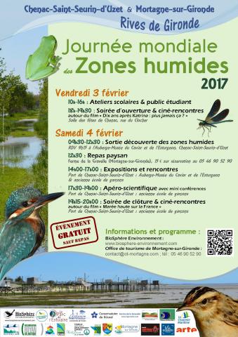 Chaque année, la Journée Mondiale des Zones Humides commémore la signature de la Convention Ramsar. En 2016 la première édition sur le site Natura 2000 rencontra un vif succès. Cette année, l'association Biosphère Environnement et ses partenaires, vous propose deux journées à la découverte des zones humides, avec deux projections cinématographiques gratuites. Les JMZH font leur cinéma, venez nombreux... GRATUIT