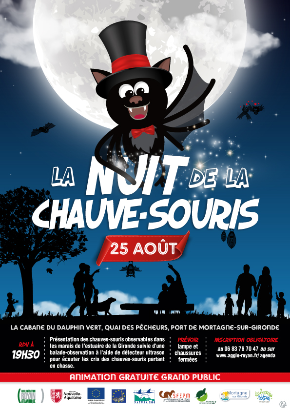 Dans le cadre de la 24ème Nuit Internationale de la chauve-souris et de l’animation du site Natura 2000 « Marais et falaises des coteaux de Gironde », venez découvrir l’univers des chauves-souris de nos marais. La soirée débutera par une projection avant une balade d'observation et d'écoute des chauves-souris à l'aide de détecteurs à ultra-sons.