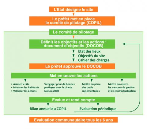 Chaque Etat-membre décide des modalités de mise en œuvre du réseau Natura 2000 et des moyens pour atteindre les objectifs de conservation des habitats et espèces Natura 2000. Pour désigner et gérer ses sites Natura 2000, la France a opté pour la concertation et la contractualisation volontaire.